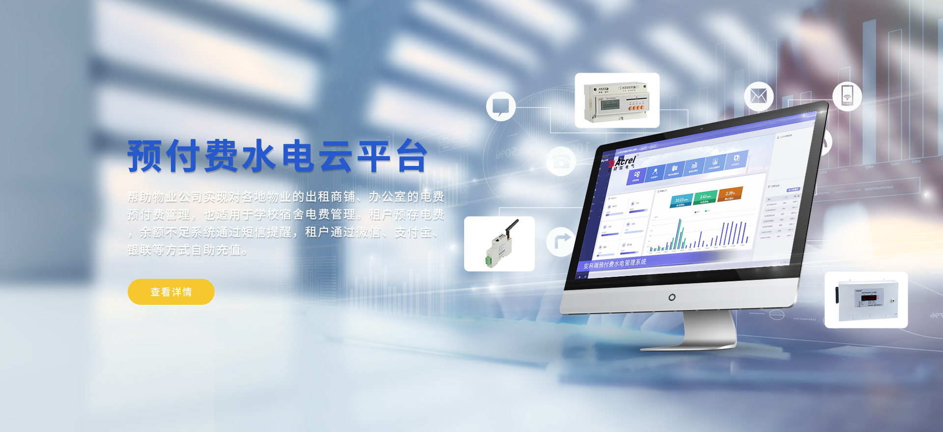 安科瑞提供的解決方案包括Acrel-EIoT能源物聯網云平臺、變電所運維云平臺安全用電管理云平臺、環保用電監管云平臺、智慧消防云平臺、能源管理云平臺、工業企業能源管控平臺、遠程預付費云平臺、餐飲油煙監管云平臺、電動汽車/電瓶車充電樁收費管理云平臺、電力監控/無線測溫系統、電能質量治理系統、電氣火災監控系統消防設備電源監控系統、防火門監控系統、應急照明和疏散指示系統、智能照明控制系統、醫用隔離電源絕緣監測系統等,幫助用戶實現能源智能化、可視化、精細化管理,提高用能效率和用能安全,為企業節能降耗和實現能源數字化建設提供數據服務。
